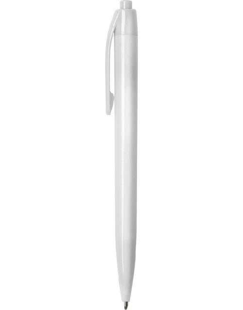 Plástico. Bolígrafo con pulsador. Cuerpo plástico de color blanco. Tinta azul