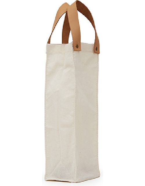 Bolsa reutilizable Pampa Spirit, confeccionada en lienzo, con manijas de cuero genuino, afianzadas con con apliques color bronce. Medidas: 31 cm alto x 9 cm ancho x 9cm profundidad. Personalizable con logo. Pampa Spirit