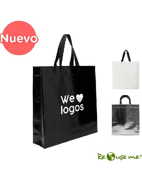 Bolsa reutilizable Shiny realizada en friselina de primera calidad con manijas tipo correa de 45 cm. Soporta hasta 15 kg de carga. Confeccionada 100% en polipropileno reciclable. Medidas: 40 cm alto x 38 cm ancho x 10 cm fuelle lateral e inferior. ReUseMe