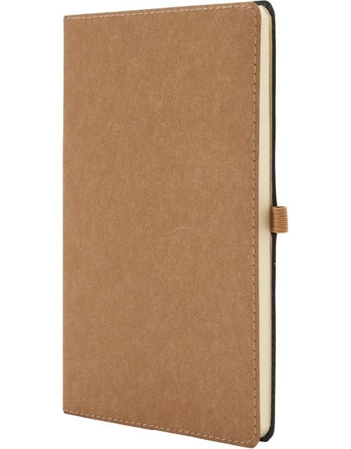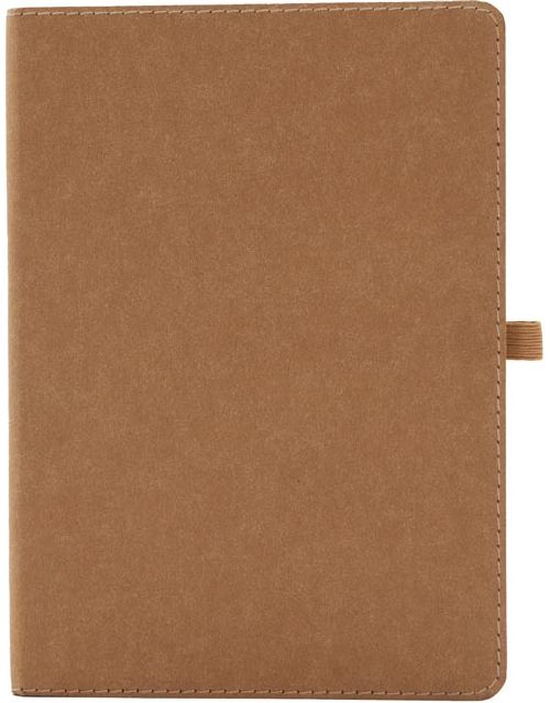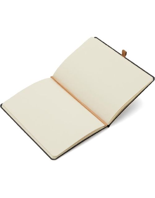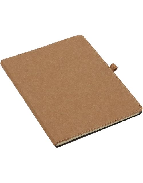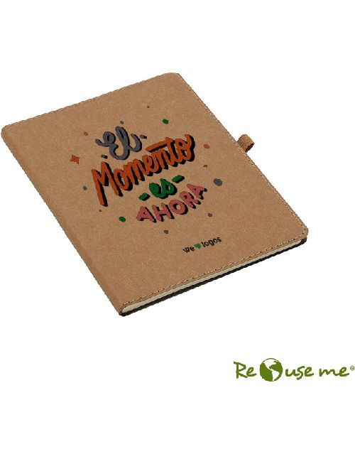 Cuaderno A5 de 64 hojas lisas de 70gr con tapa dura recubierta de papel kraft. Cuenta con marcador de páginas color beige y elástico porta lapicera. Encuadernación cosida. Medidas: 21 x 1,4 x 14 cm (Altura x Longitud x Ancho). El producto viene presentado en una bolsa de PLA 100% compostable. ReUseMe