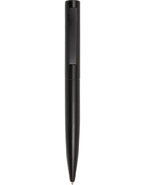 Metal. Cuerpo metálico negro mate. Clip del mismo color. Apertura giratoria. Tinta negra.