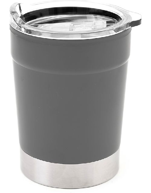Jarro térmico realizado en acero inoxidable, polipropileno y AS, con tapa transparente cristal clear con cierre. Producto libre de BPA. Producto aprobado por el I.N.A.L. para el contacto con alimentos. Medidas: 12 cm x Ø 8.5 cm. Capacidad: 360 ml. Pampero