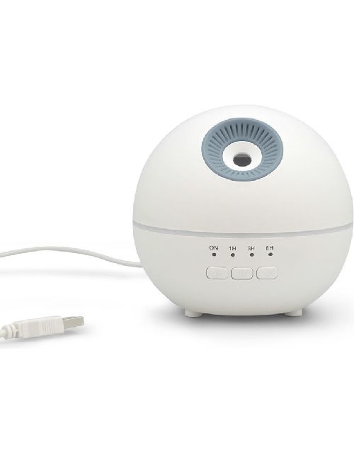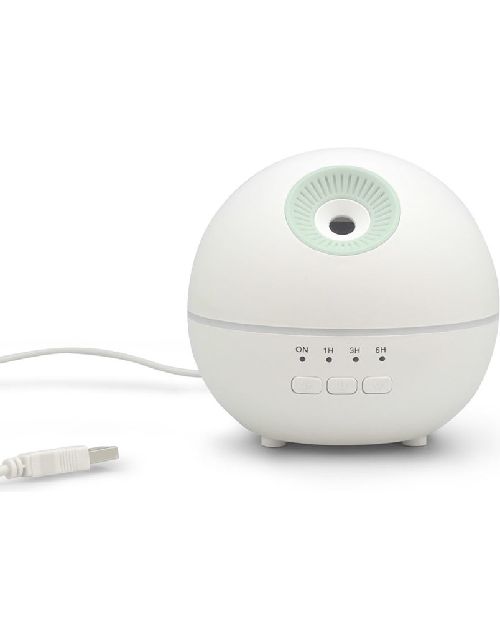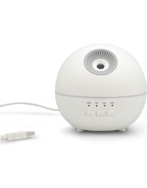 Sphere es un humidificador aromático que usa ondas ultrasónicas para vaporizar la mezcla de agua y aceites esenciales emitiendo un vapor fresco, perfumado y seco. Se puede utilizar de manera continua y se apagará automáticamente una vez que se haya evaporado toda el agua. También cuenta con función "Timer", se podrá programar entre 1, 3 y 6 horas. Al encender el botón "Luz" comenzará a cambiar gradualmente entre 7 colores, y al presionar nuevamente el mismo botón se podrá seleccionar fijo el color deseado. Plástico + Polipropileno. Ø 11,5 x 10,5 cm. Capacidad 120ml. Luz led en fade o 7 colores fijos. Temporizador de uso: 1, 3 y 6 horas.