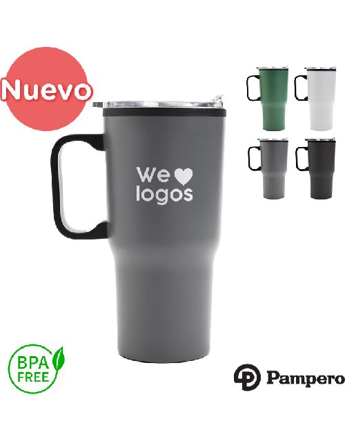 Jarro térmico con mango,realizado en acero inoxidable en su exterior, y polipropileno de color negro en su interior. Cuenta con tapa transparente cristal clear con cierre. Incluye base antideslizante. Producto libre de BPA. Producto aprobado por el I.N.A.L. para el contacto con alimentos. Medidas: 17,5 cm x diámetro 8.7 cm. Capacidad: 600 ml. Pampero