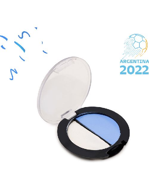 Maquillaje artístico lavable en color celeste y blanco. Puede aplicarse fácilmente en la piel o en el pelo con los dedos, esponja, o hisopos. Es apto para niños, se retira fácilmente con agua y jabón. Producto no personalizable con logo. Aprobado por ANMAT. Precauciones: Mantener lejos de las mucosas. En caso de observar algún tipo de reacción sobre la piel, lavar rápidamente con agua y con jabón y discontinuar el uso. Contiene piezas pequeñas, prohibido el uso para menores de 3 años.
