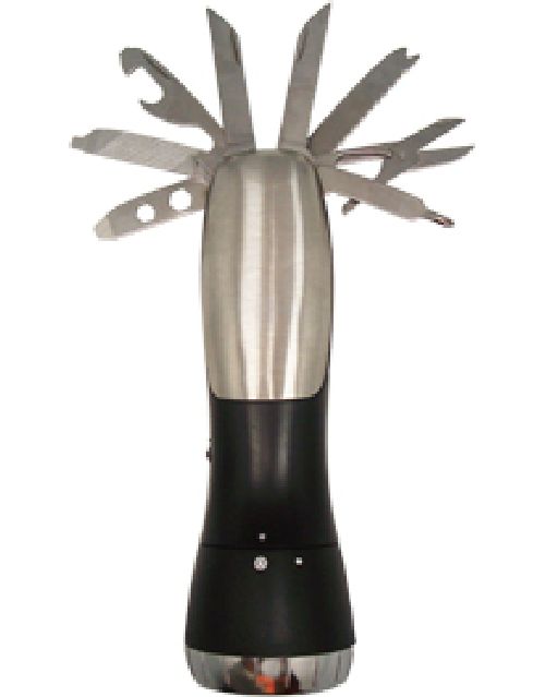 . Luces LED Multiuso: destornillador plano, ajusta tuerca, navaja, destapador, cuchillo, destornillador, tijera, serrucho y baliza. No incluye pilas (J152)
