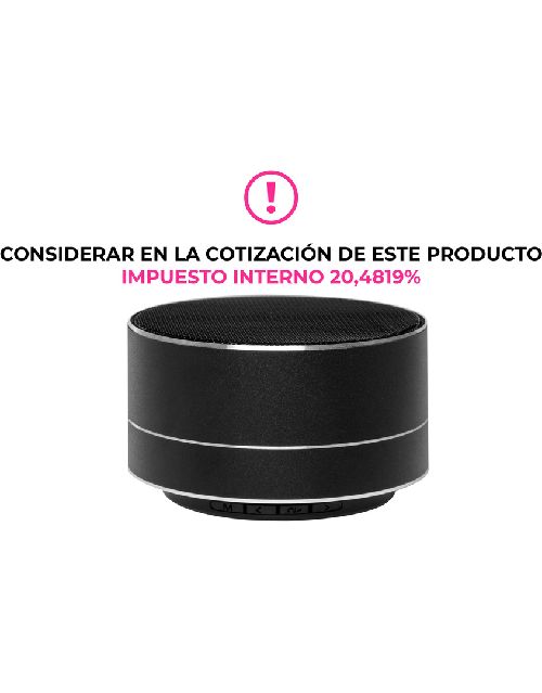 Ø 7 x 4 cm. Metal. Parlante bluetooth. Botones de volumen, encendido y modo Bluetooth. Con lector de TF card. Base antideslizante. Incluye cable USB para carga. Potencia: 3 Watts Alcance de transmisión hasta 10 mts Voltaje DC 5V
