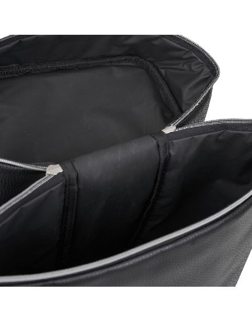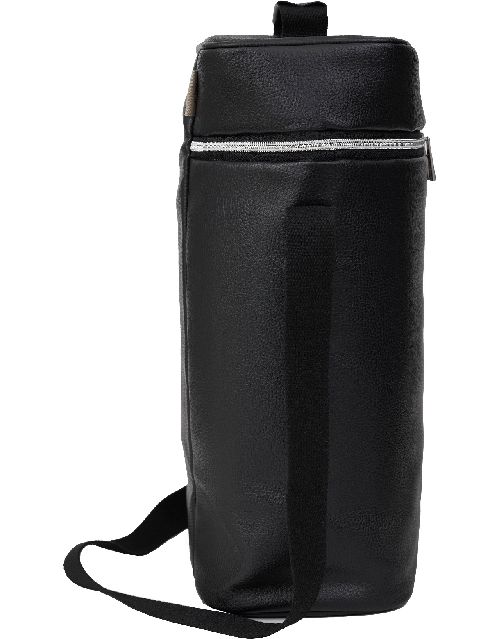 Bolso para equipo de mate Pampero, realizado en PU negro, simil cuero, forrada internamente en negro. Cuenta con correa regulable. La foto es ilustrativa, no incluye termo ni mate. Medidas: 39 x 23 x 14 cm. Capacidad: 12lts. Pampero