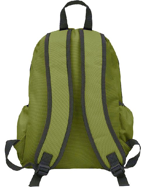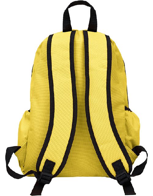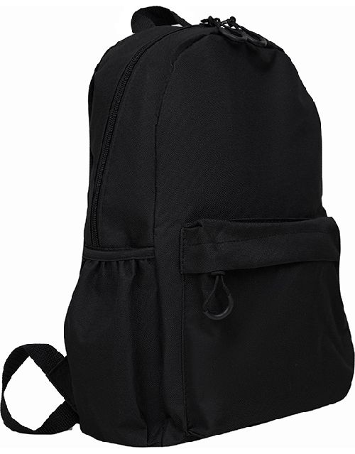 Mochila confeccionada en Polyester, con bolsillo frontal con cierre y 2 bolsillos laterales elásticos . Medidas: 42 cm alto | 27cm ancho | 12cm profundidad. Capacidad 13.5 Lts.