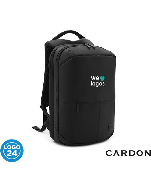 Mochila confeccionada en Polyester con cierres en tono y cabezal metálico color negro. Cuenta con un compartimiento primario con dos bolsillos internos para guardar el celular y, un compartimiento secundario porta notebook. Espalda acolchonada y correas regulables para llevarla a la altura que más te guste. Esta mochila es ideal para llevar tu portátil al trabajo, de viaje o donde necesites para estar siempre online. Dimensiones: 43,5 x 29 x 16 cm (Alto x Longitud x Ancho). Capacidad 19L. Cardon. LOGO24: Producto disponible para el servicio de logueo en 24hs, respetando unidades mín. de logueo y 200 unidades máx. Consultar términos del servicio. El descuento ya se encuentra aplicado en el precio de la web