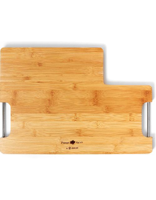 Tabla parrillera de Bamboo antibacterial con mangos de acero inoxidable. Cuenta con organizador de cubiertos con canal imantado. Producto aprobado por el I.N.A.L. para el contacto con alimentos. Medidas: 43 x 30 x 2 cm. Producto libre de BPA. Pampa Spirit