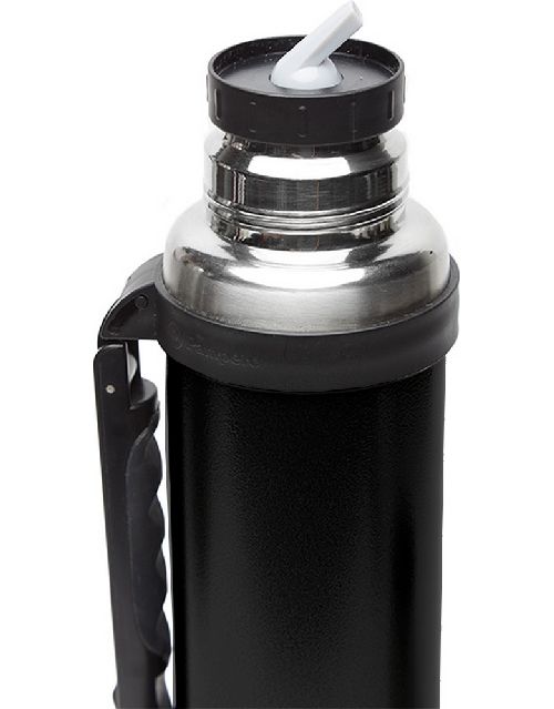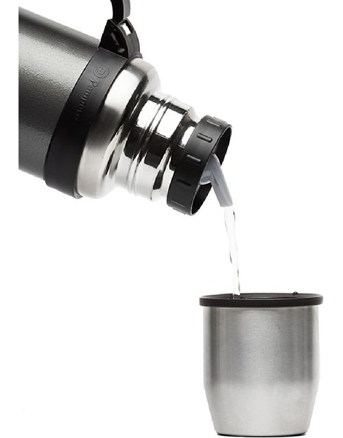 Termo de acero inoxidable 304, recubierto con esmalte especial que protege de ralladuras y golpes. Puede mantener el contenido a la misma temperatura durante 18hs, gracias a su doble pared aislante especial de acero. Cuenta con un tapón cebador Hermético a rosca con la función anti derrame y tapa con superficie plana estable para usar como taza o vaso y manija plegable para facilitar el transporte. Presentado en caja de cartón. Producto aprobado por el I.N.A.L. para el contacto con alimentos. Medidas del termo: 34 cm x 10,5 cm. Medidas de la caja: 35 x 11 x 11 cm. Capacidad: 1,1 Lts. Pampero
