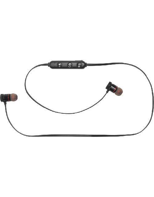 Plástico. Auriculares bluetooth. Cable de 70 cm aprox. Botones para aumentar / disminuir el volumen, aceptar y rechazar una llamada. Los audifonos son imantados. En uno de los costados entrada mini usb para recargar la batería. Estuche redondo de Eva Pouch. Incluye repuestos para los audífonos.